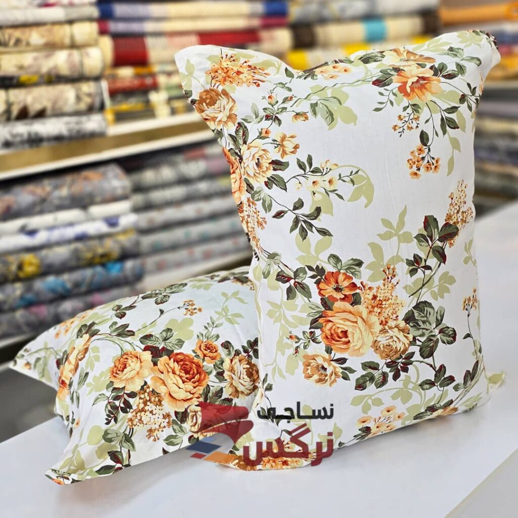 روبالشتی نخ پنبه گلدار زرد کد 568