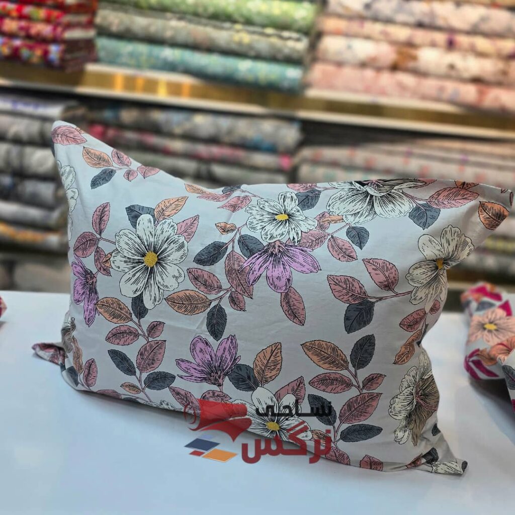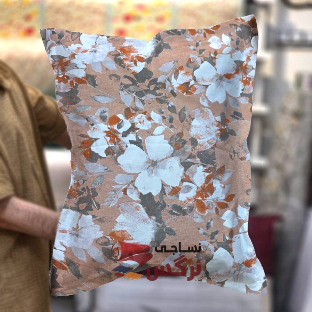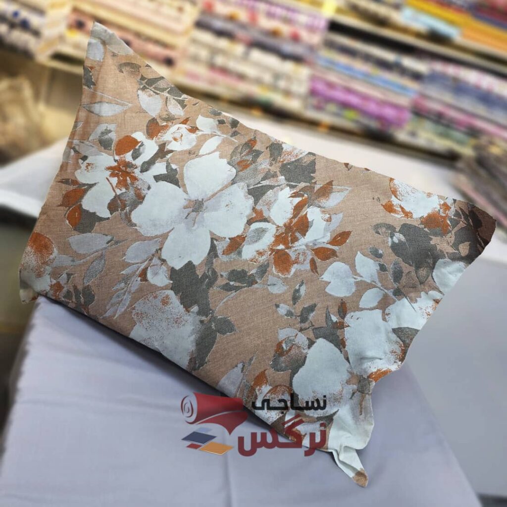 روبالشتی نخ پنبه گلدار نسکافه ای کد 655