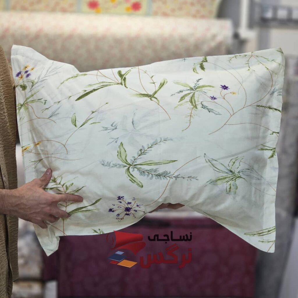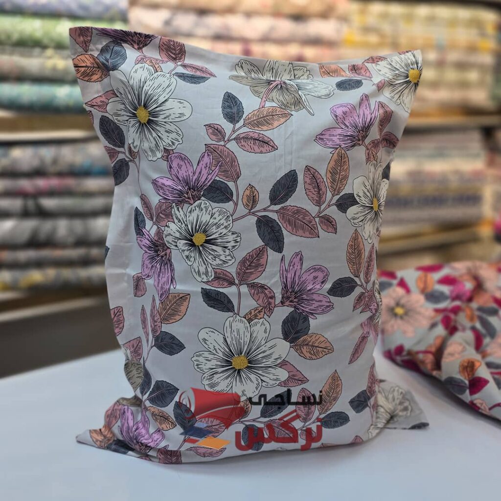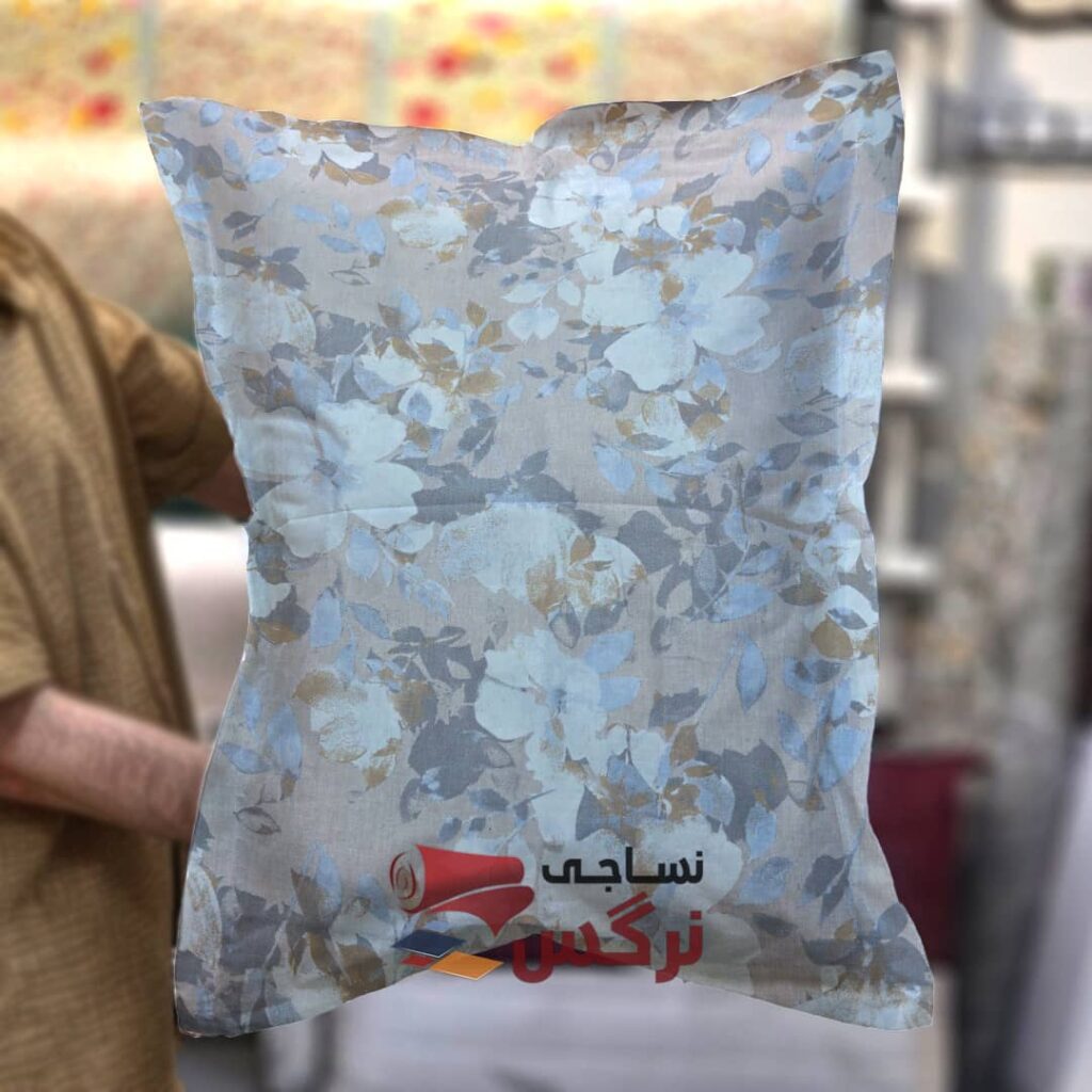 روبالشتی نخ پنبه گلدار نسکافه ای کد 655