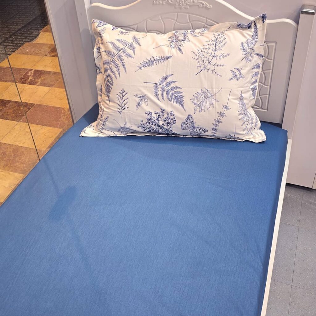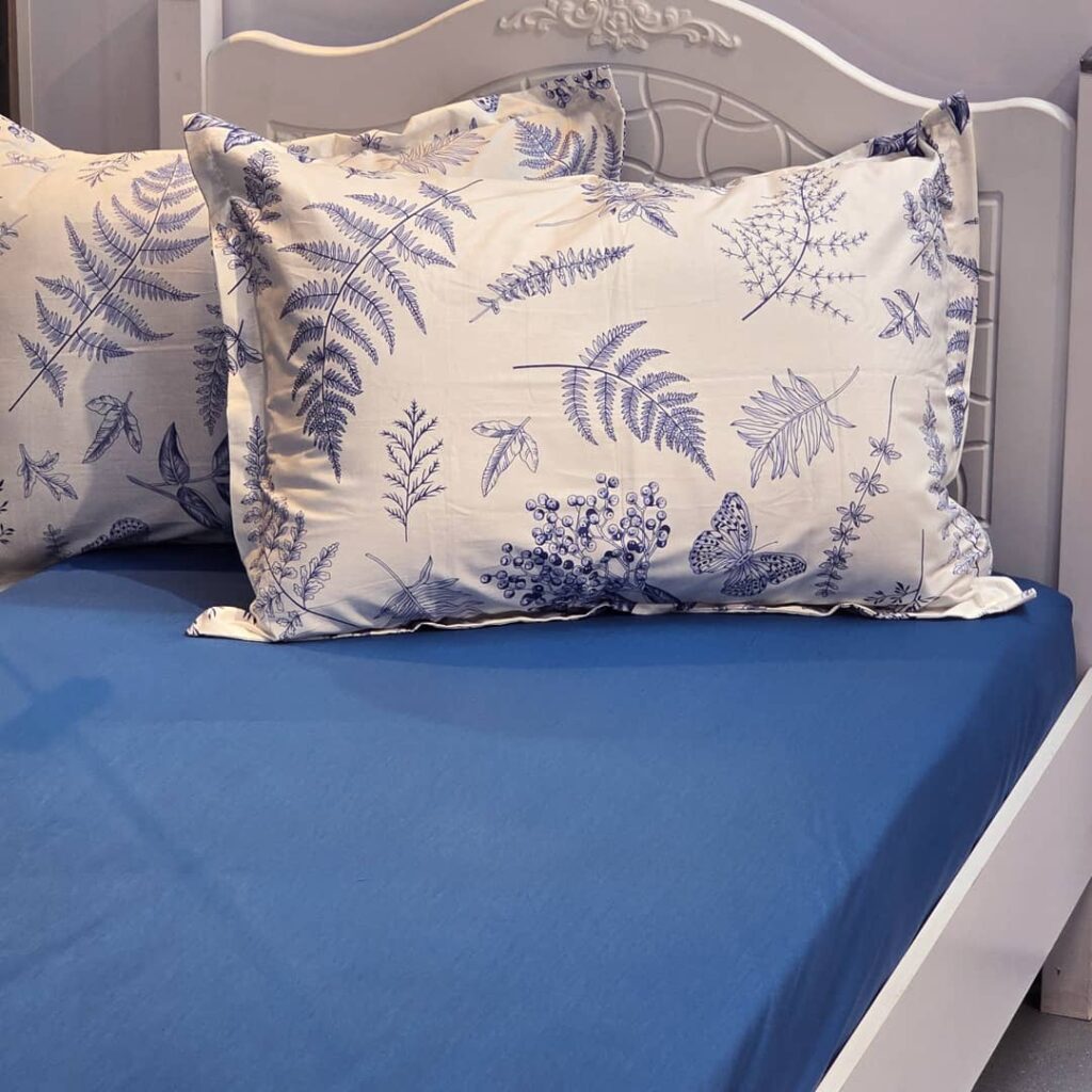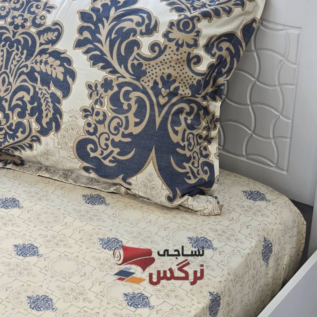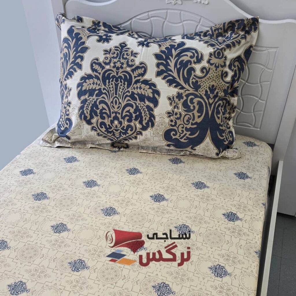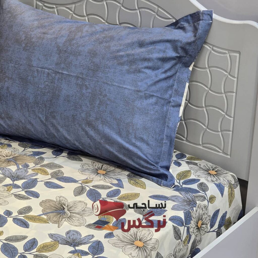 نیم ست کاورکشدار تخت و روبالشتی نخ پنبه آبی
