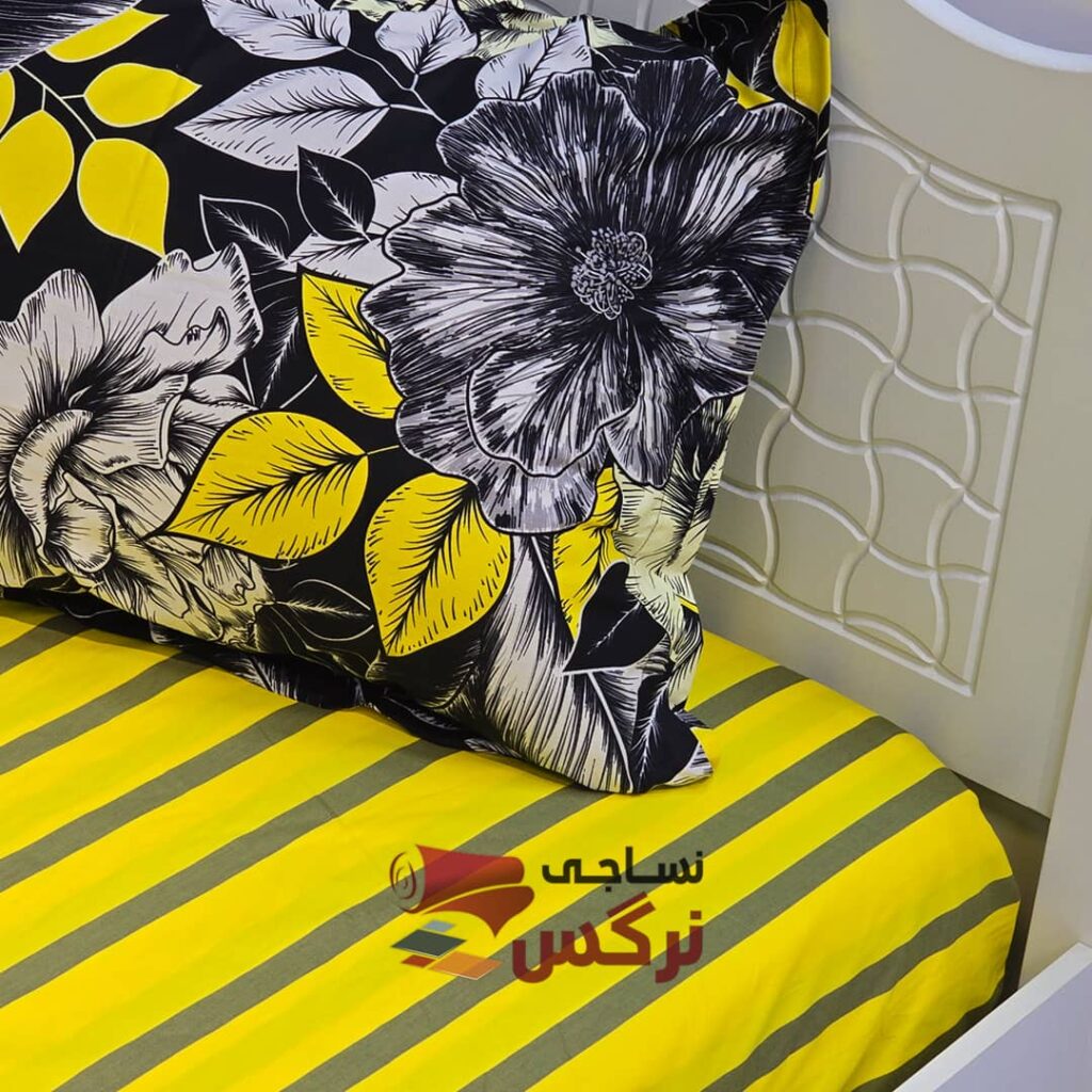 نیم ست کاورکشدار تخت و روبالشتی نخ پنبه زرد
