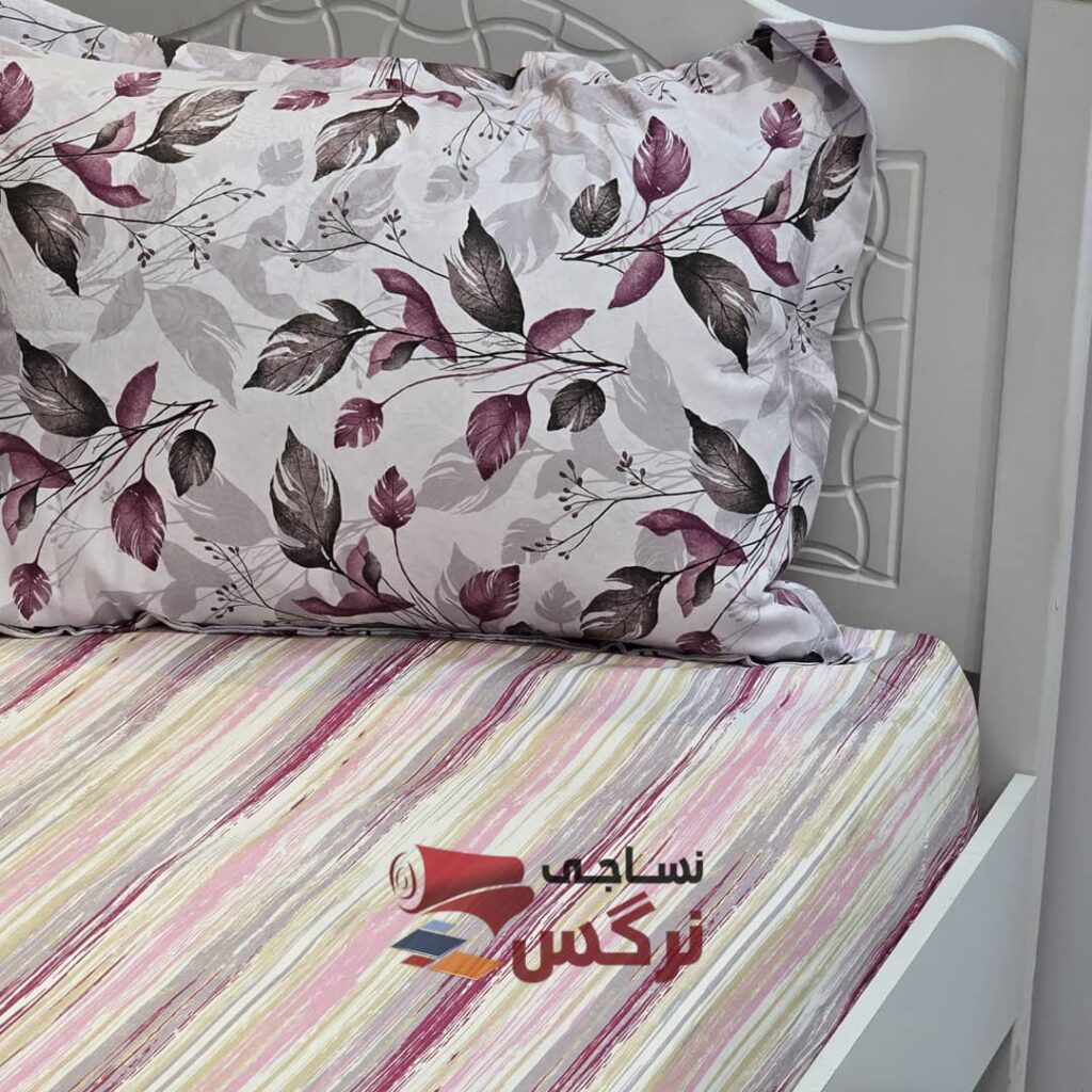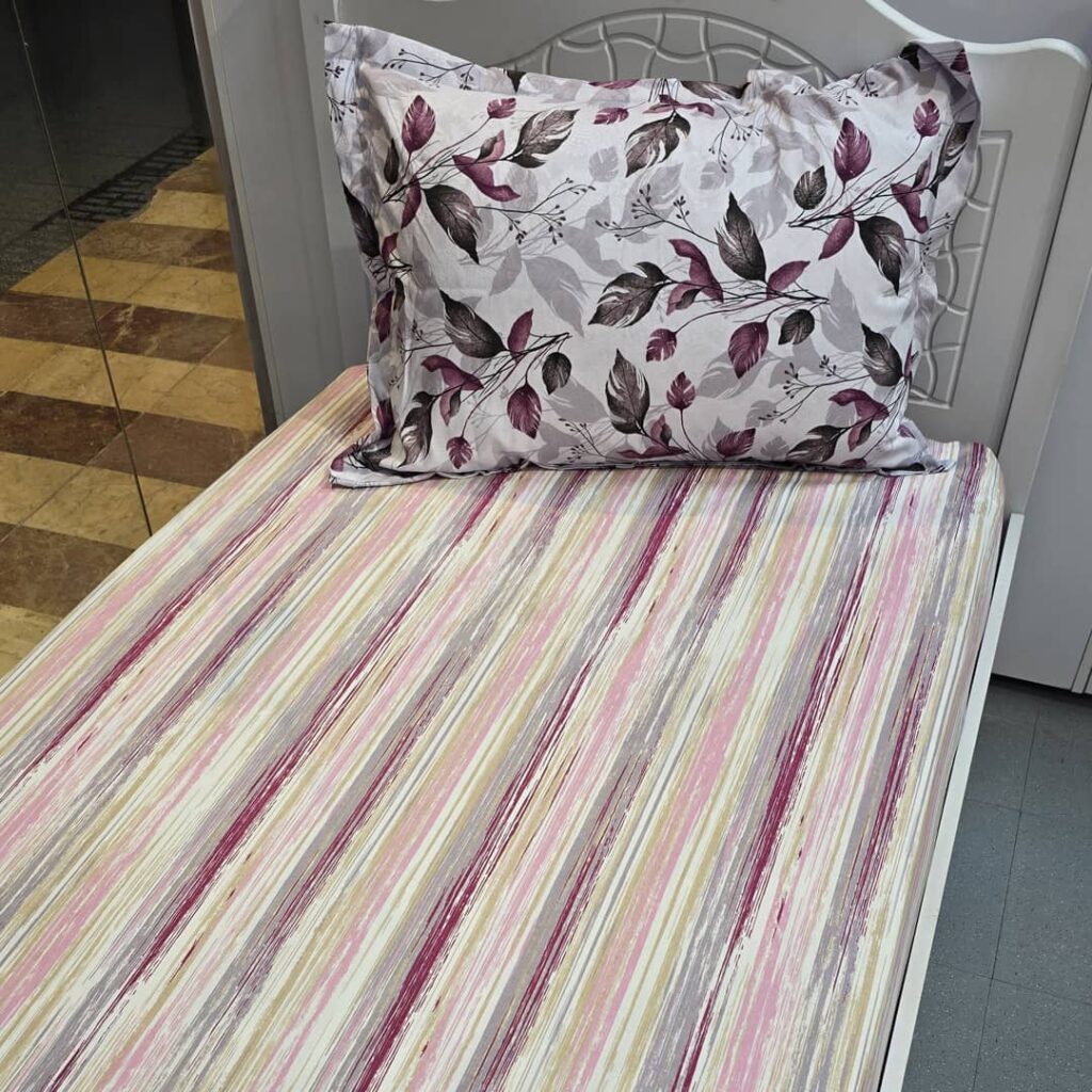 نیم ست کاورکشدار تخت و روبالشتی نخ پنبه راه راه
