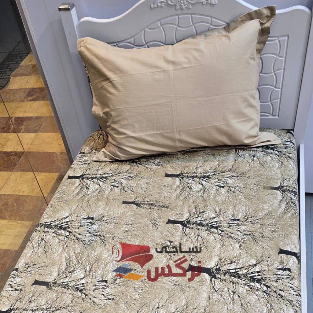 نیم ست کاورکشدار تخت و روبالشتی ساتن نخ طرح درخت2