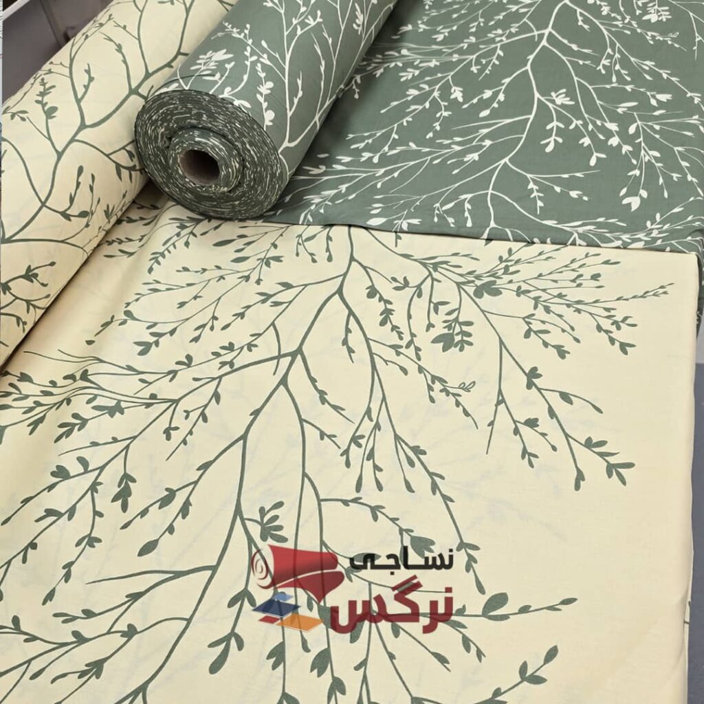 نیم ست کاورکشدار تخت و روبالشتی نخ پنبه شاخ و برگ سبز