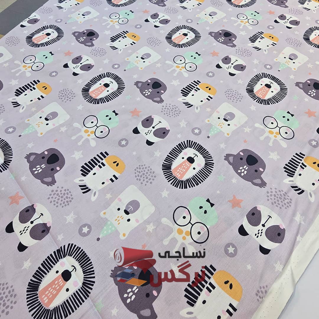 ملحفه نخ پنبه طرح حیوانات بنفش عرض 2 متر کد 655