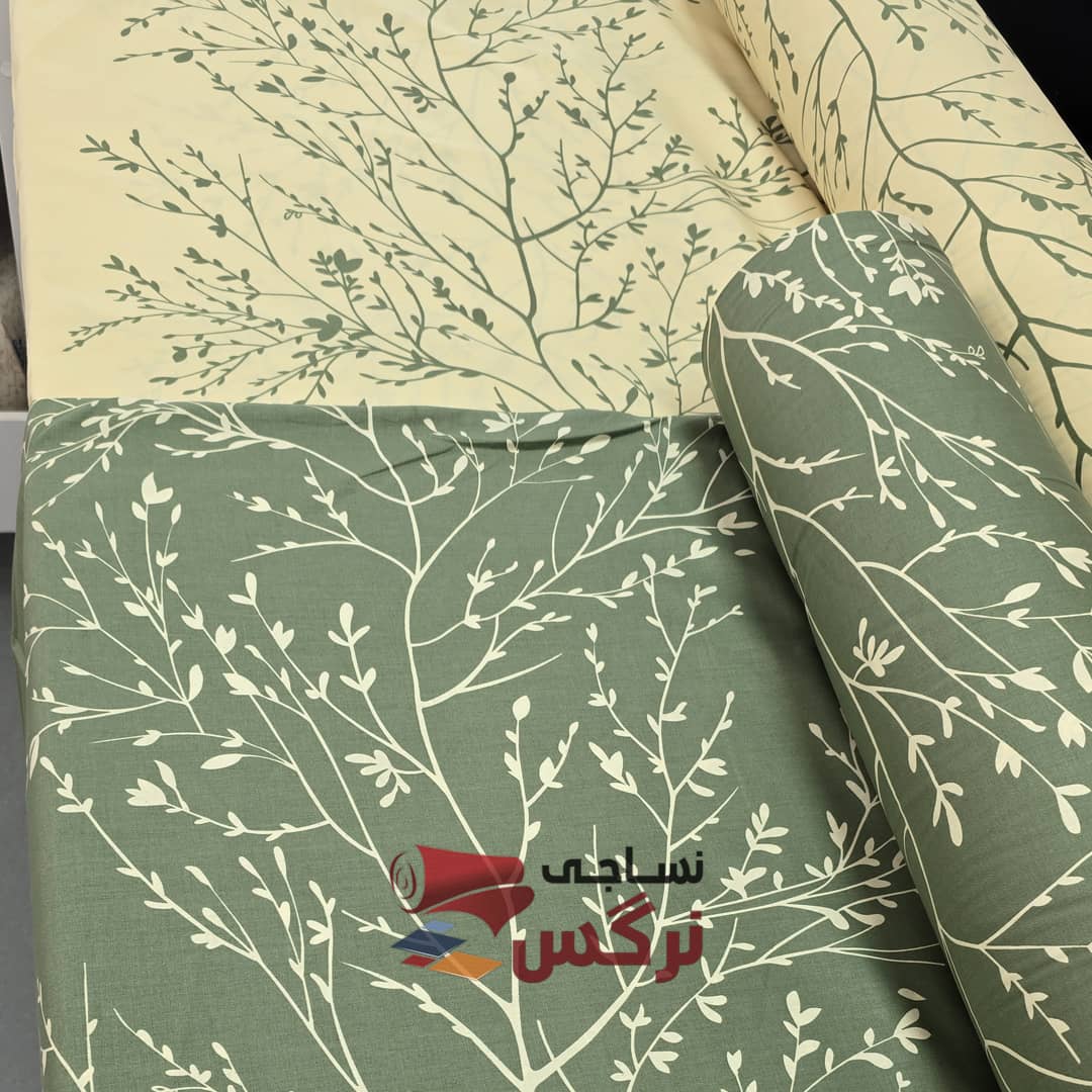 نیم ست کاورکشدار تخت و روبالشتی نخ پنبه شاخ و برگ سبز
