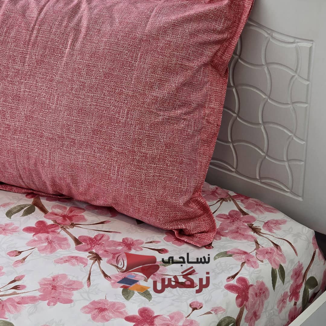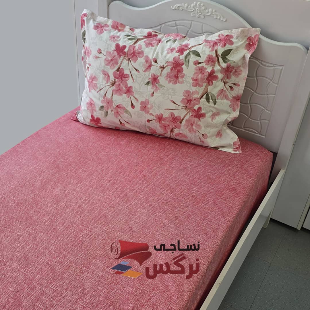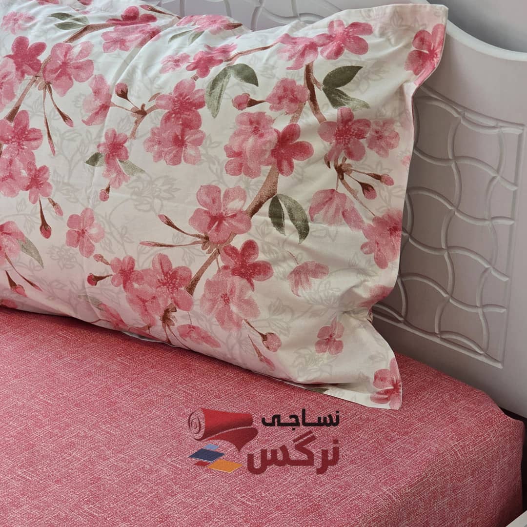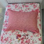 نیم ست کاورکشدار تخت و روبالشتی نخ پنبه صورتی